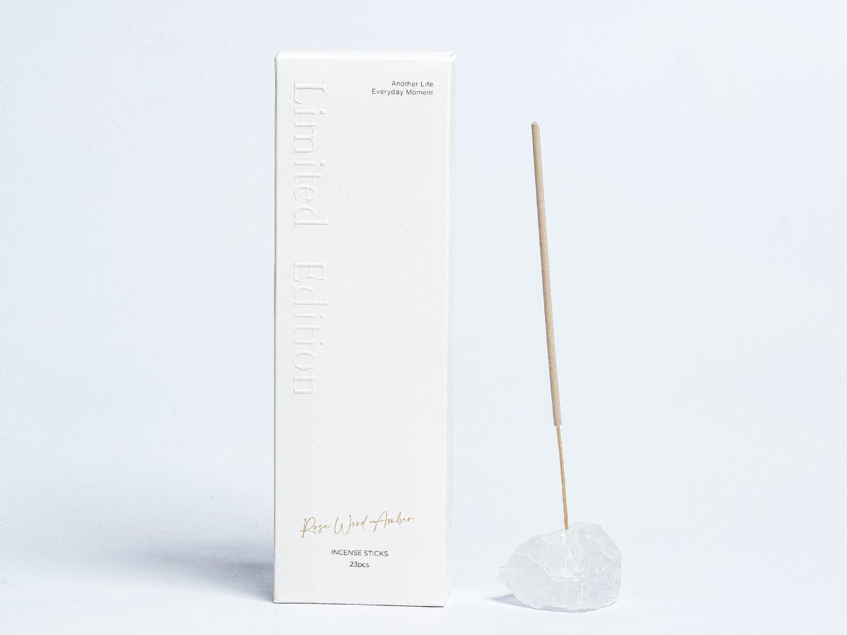 Simple White incense sticks are carefully paired with a natural Misty White Crystal incense holder, enhancing the sensory experience with its tranquil beauty and natural allure. Perfect for those who appreciate simplicity and the calming influence of natural elements.The Simple White Collection Incense offers a refined way to enjoy the art of incense burning. This collection not only elevates the ambiance of any space but also promotes a sense of serenity and harmony through its minimalist design and use of natural materials.