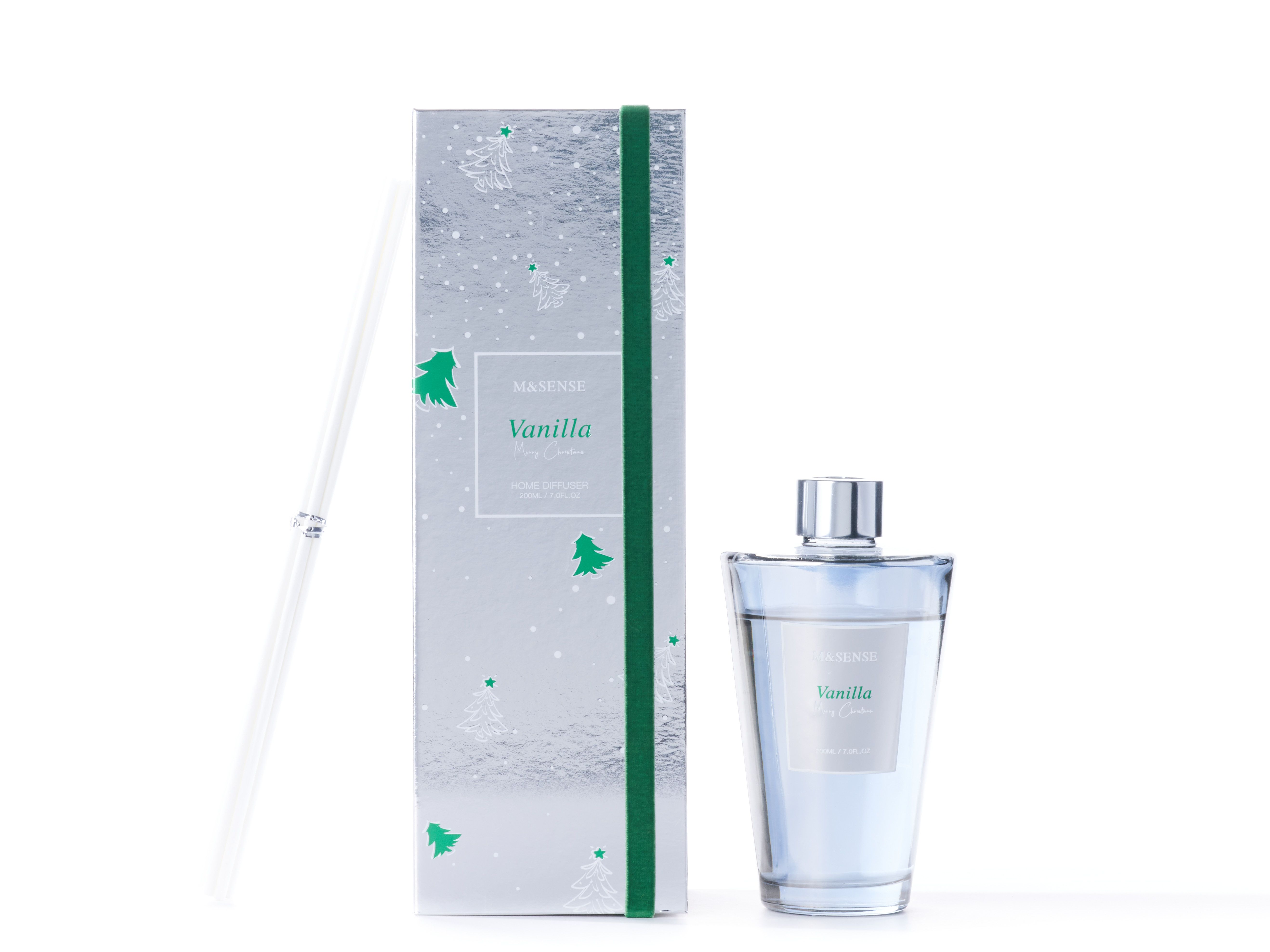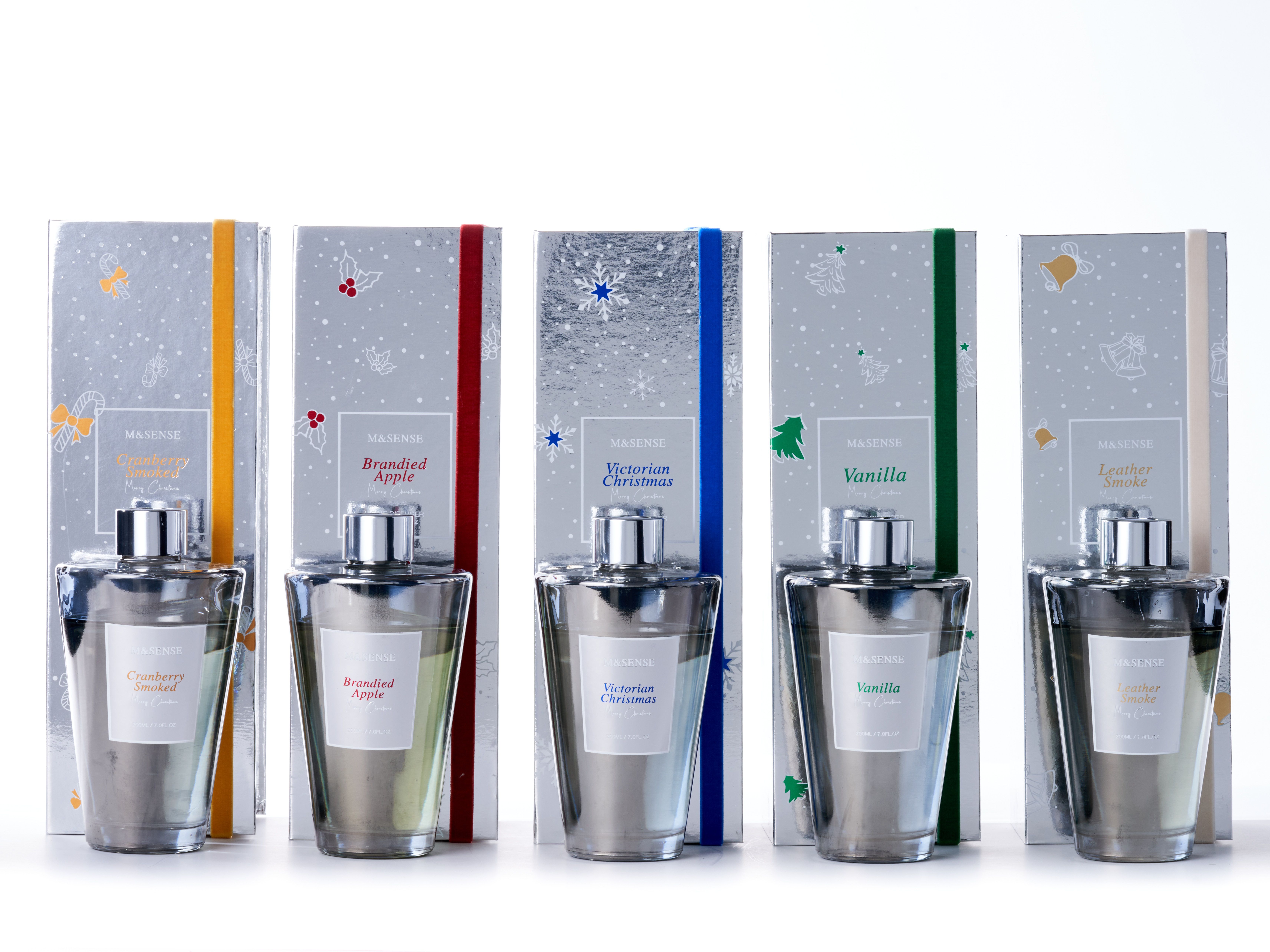 Discover our festive Reed Diffuser, a contemporary style home fragrance that elevates your space with a elegant scent. Crafted with a translucent outer layer, our conical bottles offer a modern touch to any interior, allowing the beauty of the diffuser to shine through. The unique conical shape not only enhances the visual appeal but also ensures optimal fragrance dispersion, enveloping your room in a luxurious aroma.