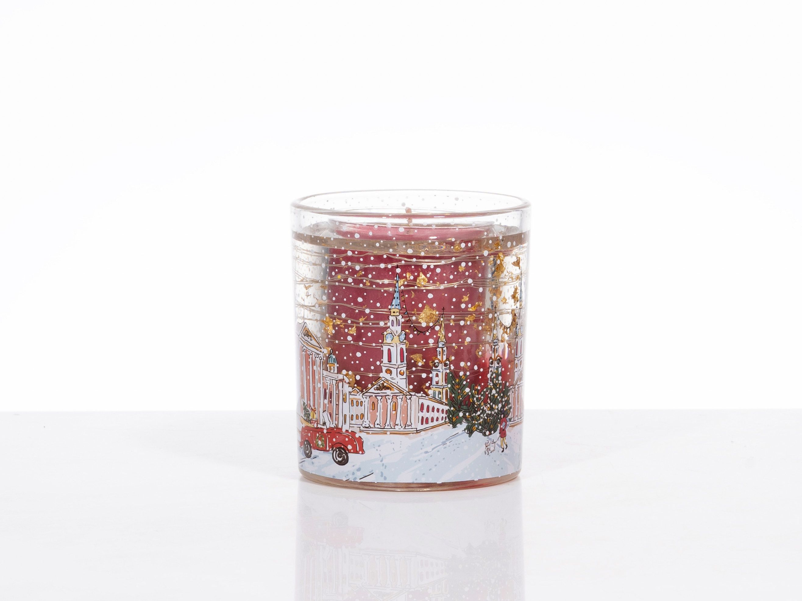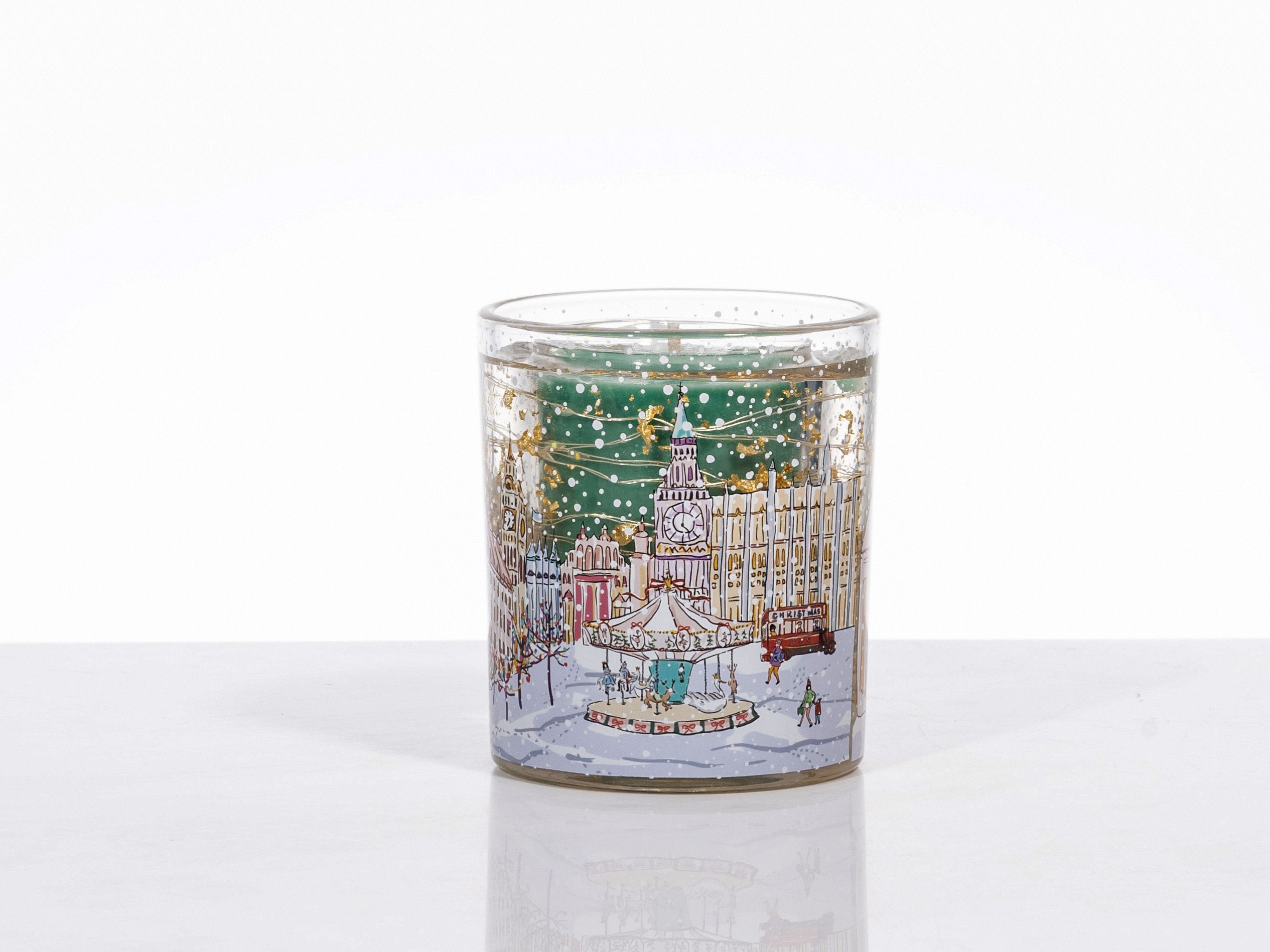 Add to the ambience of your room with our light-up gel candle. Gold foil in the gel surrounding the candle glow and glisten for a fantastic finish. Simply light the scented candle as usual and it will trigger the LEDs that surround the candle to produce a beautiful warm glow. The scented coloured wax prints festive colours through the clear jelly wax.