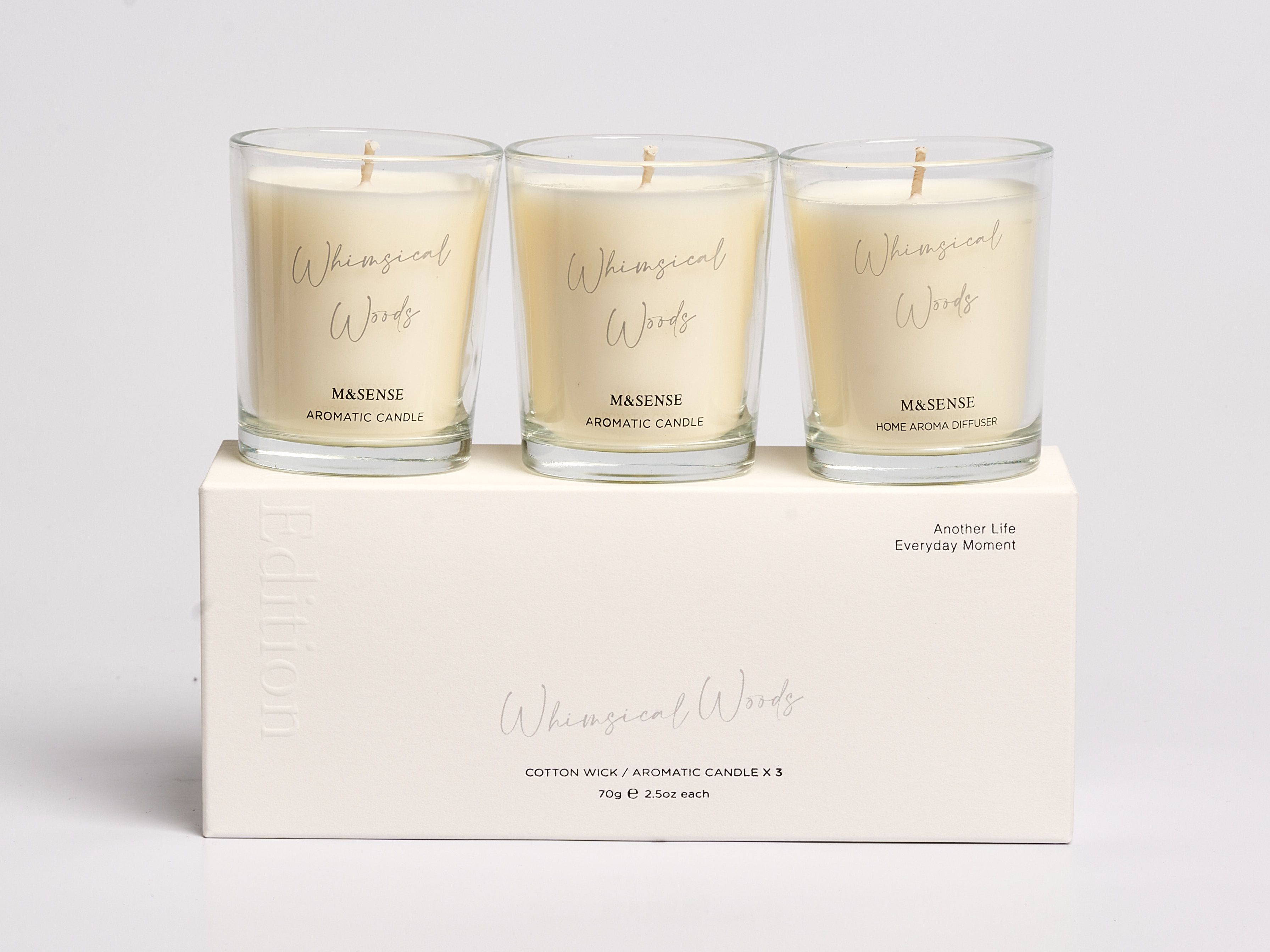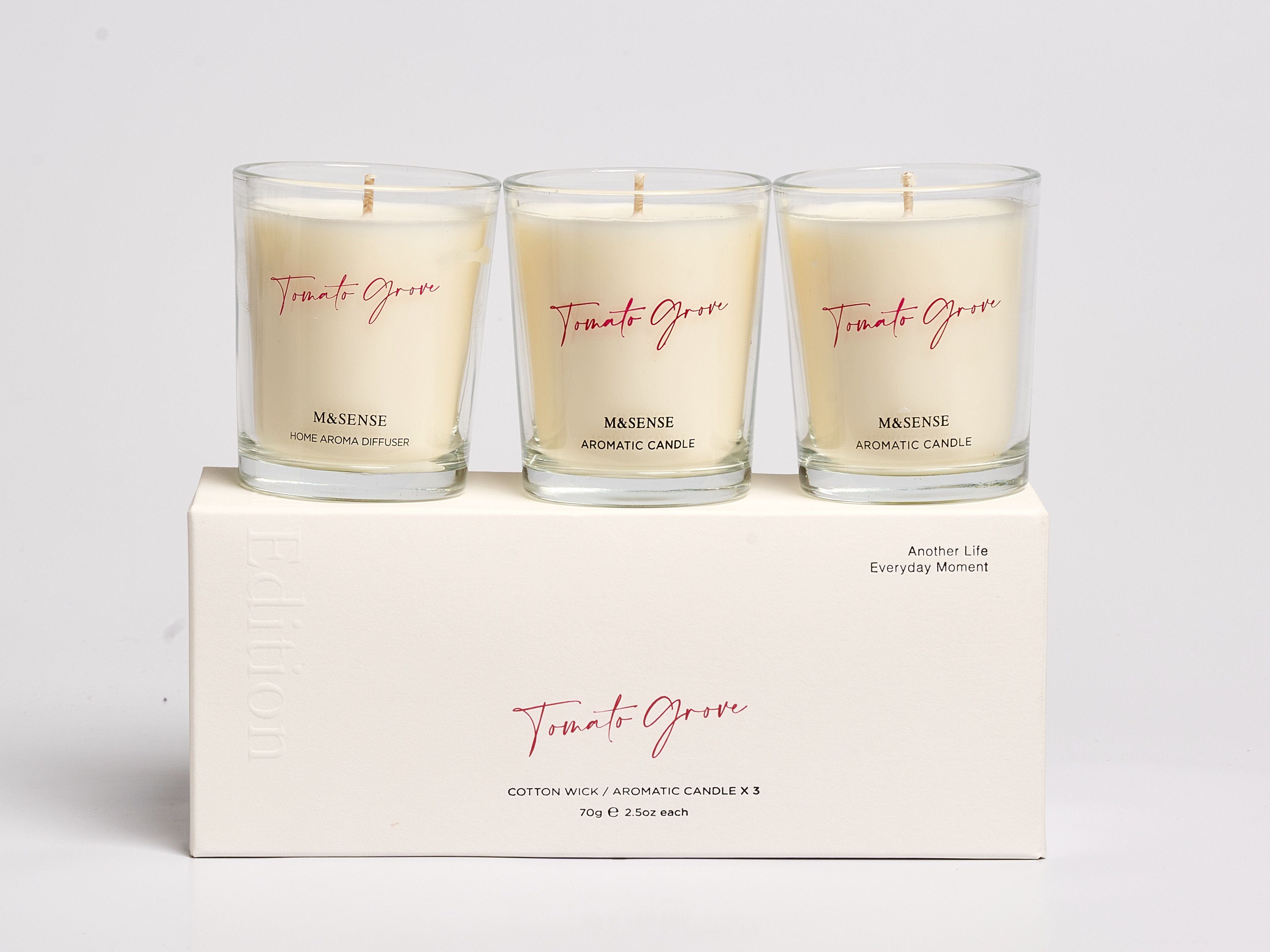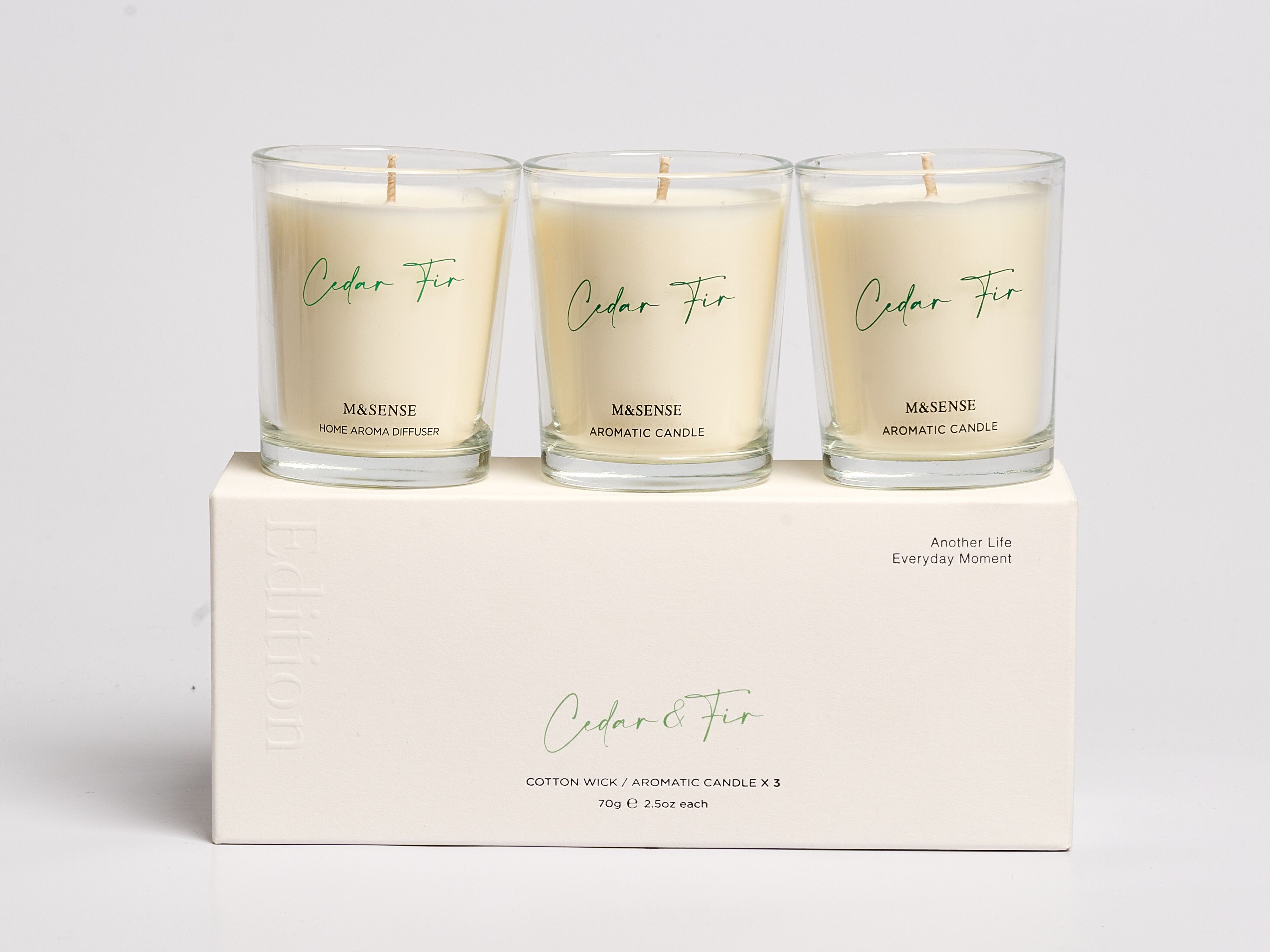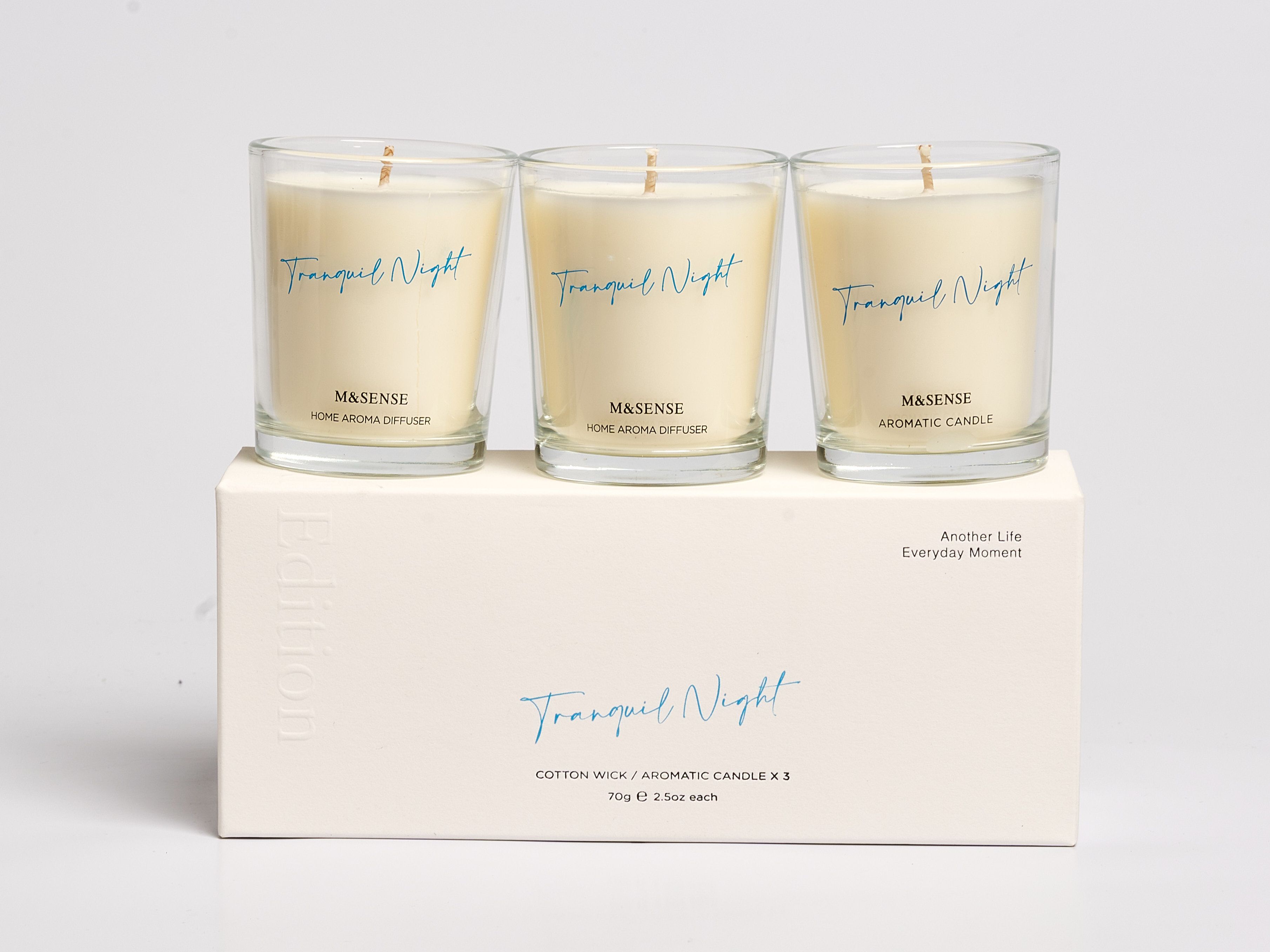 This travel-friendly set of three aromatic candles offers the same fresh scent of nature. Each scented candle weighs 70g, making them easy to pack and perfect for relieving stress and adding ambiance on the go.