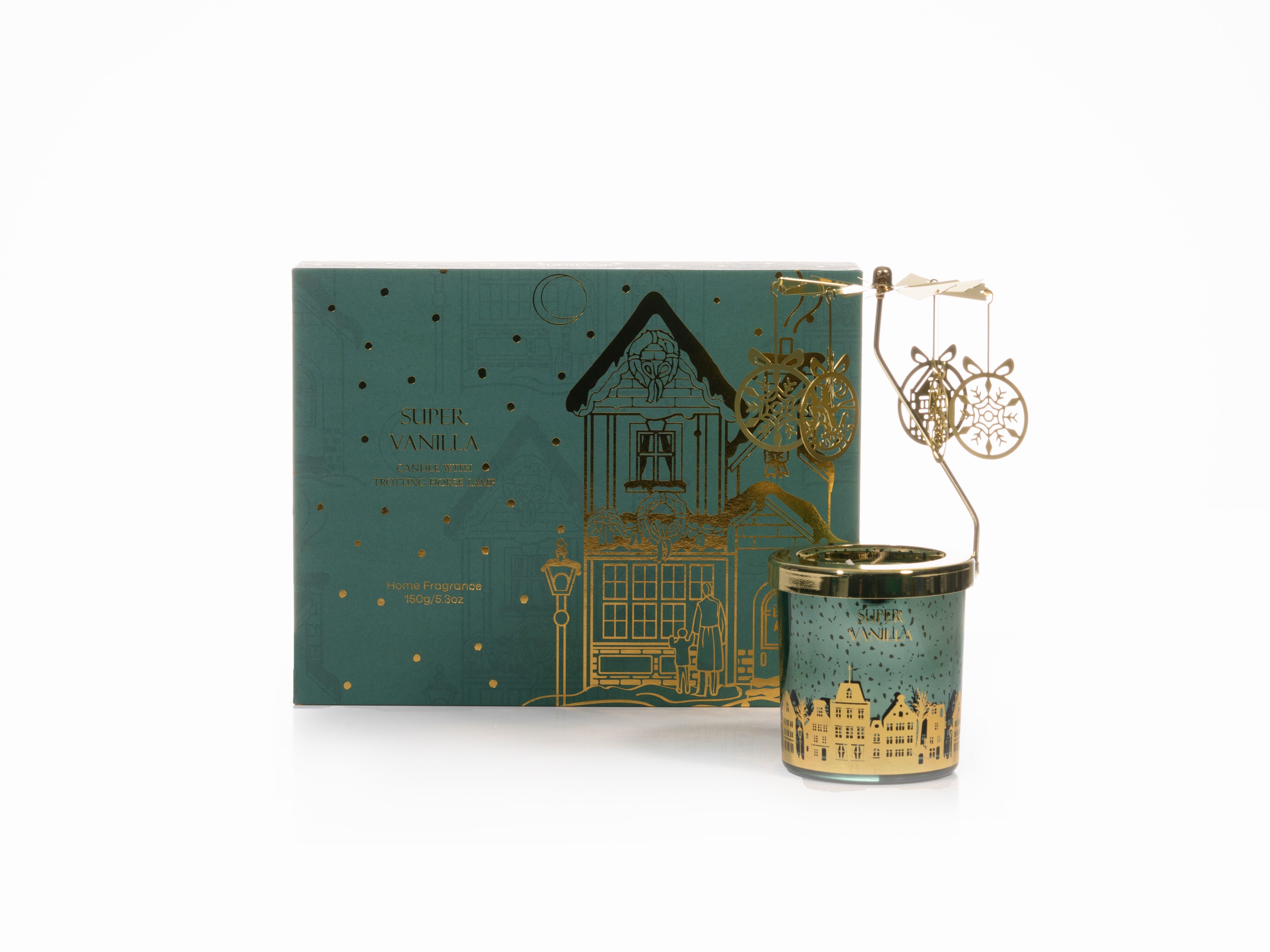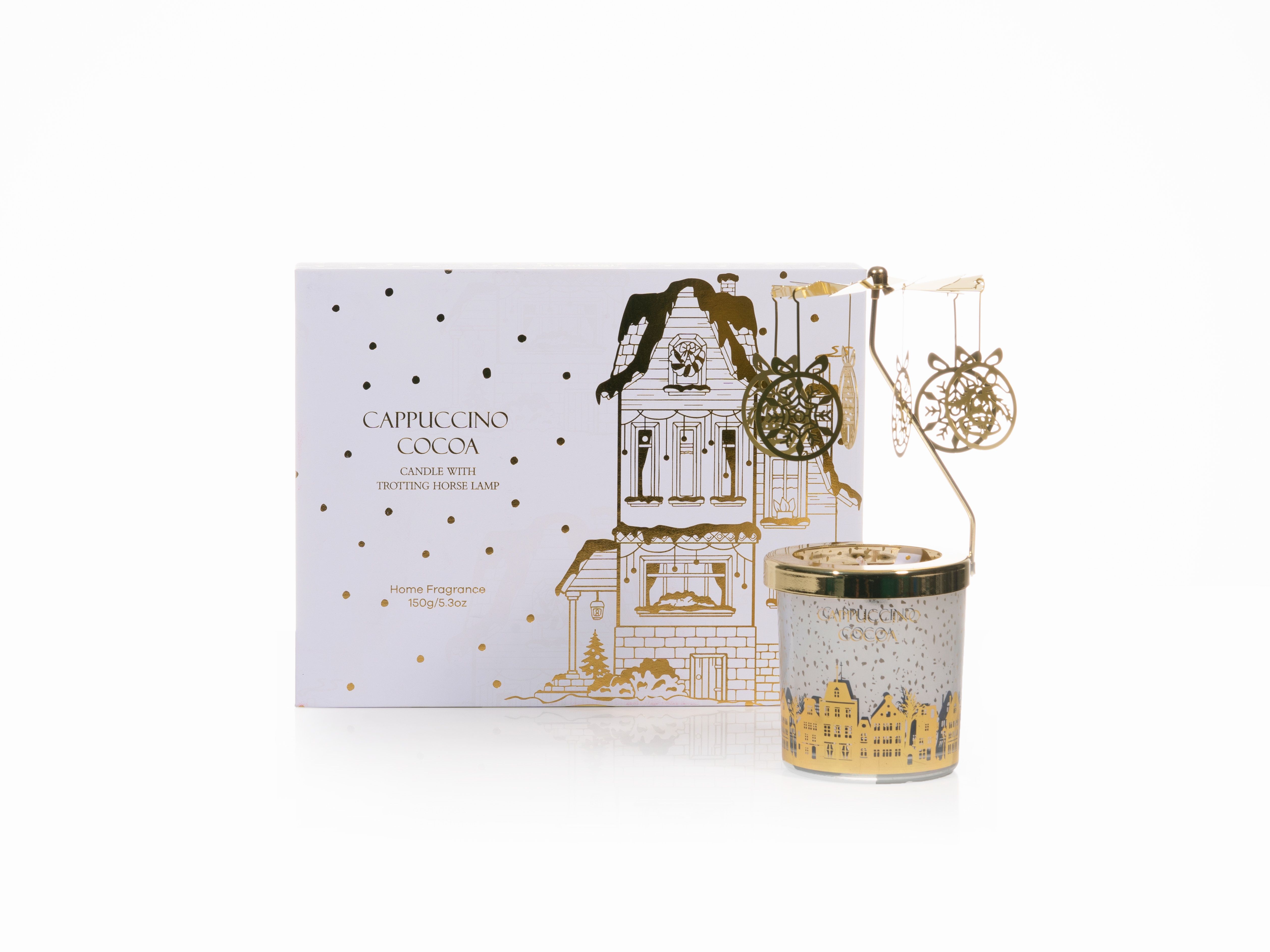 Discover our enchanting Scented Candle With Trotting Horse Lamp, a festive Christmas candle designed to bring a touch of elegance and tradition to your holiday celebrations. To celebrate the end of the year, bell ,snowflake and gift boxes are transformed into carousel candle set charms., adding a whimsical and dynamic element to your decor. Infused with a blend of seasonal fragrances, it fills your space with the warm and inviting scents of the holiday season.