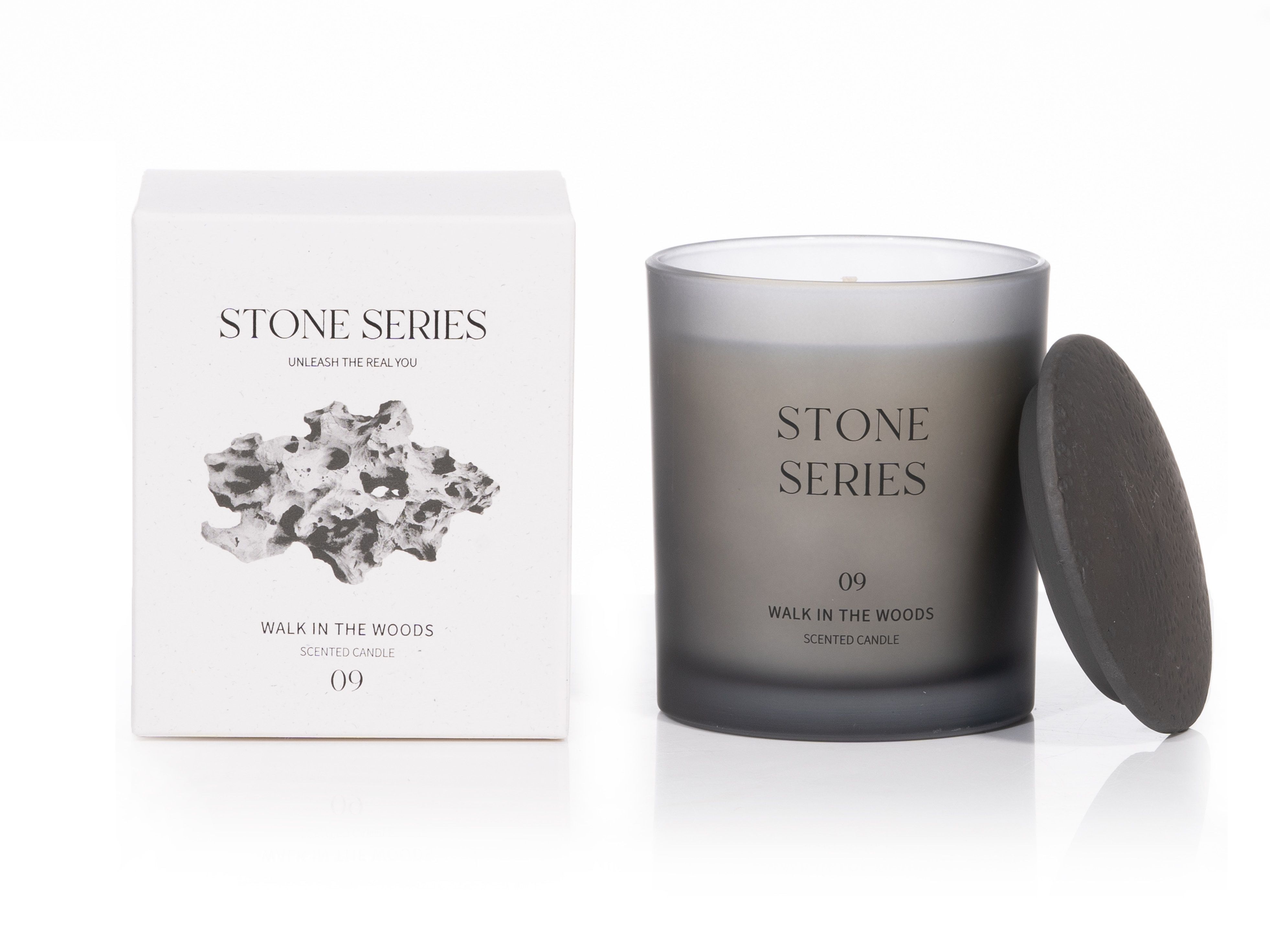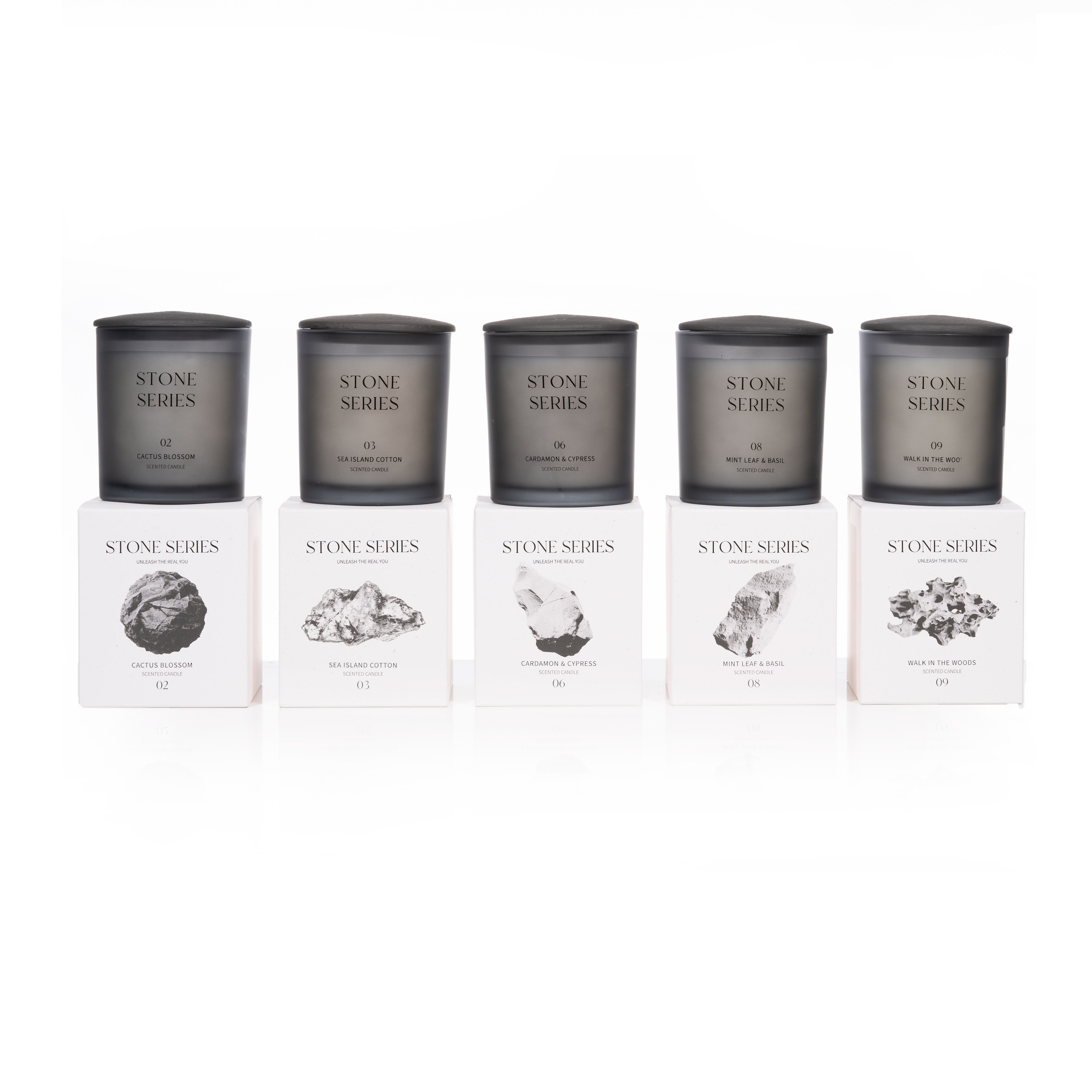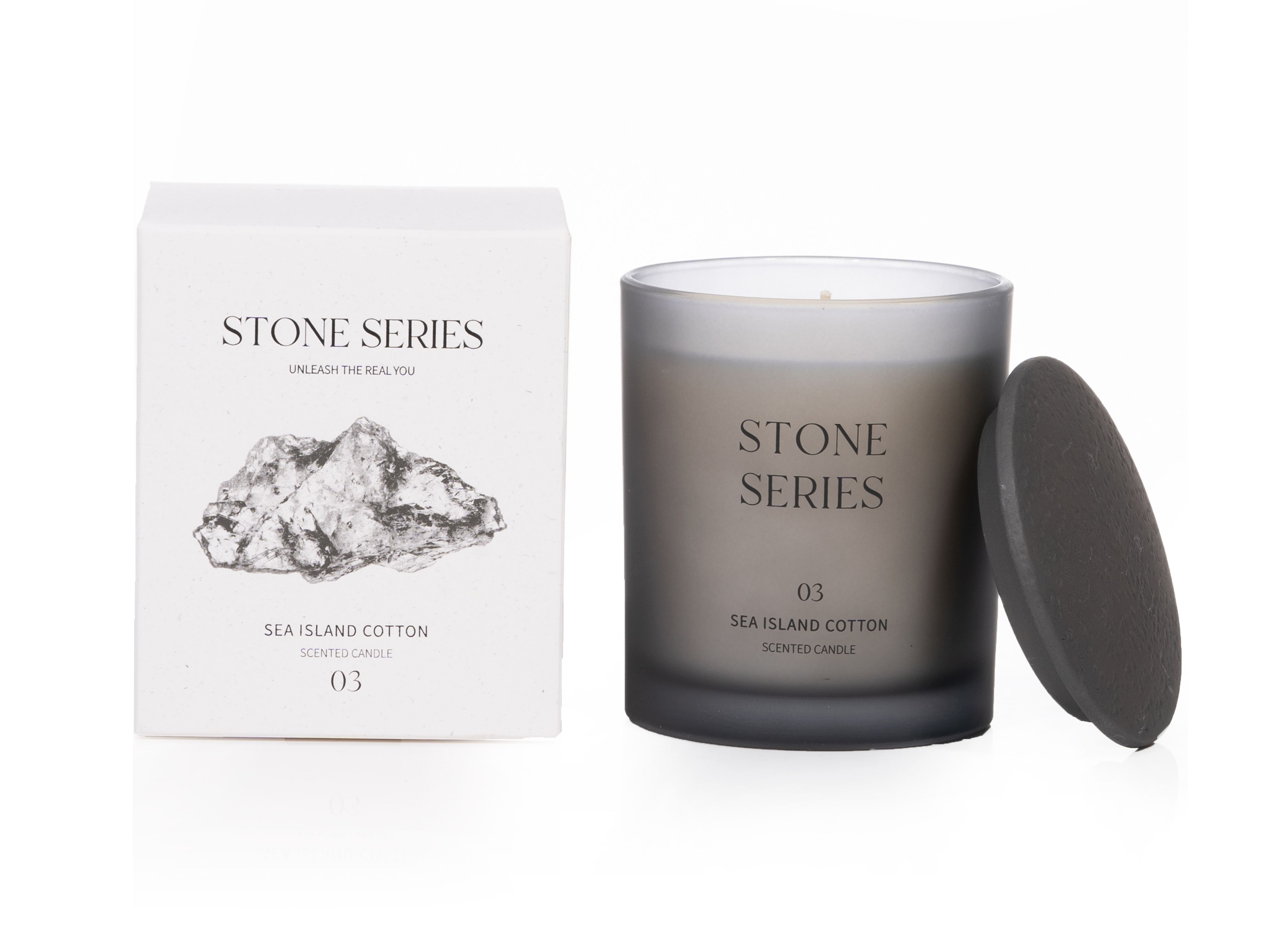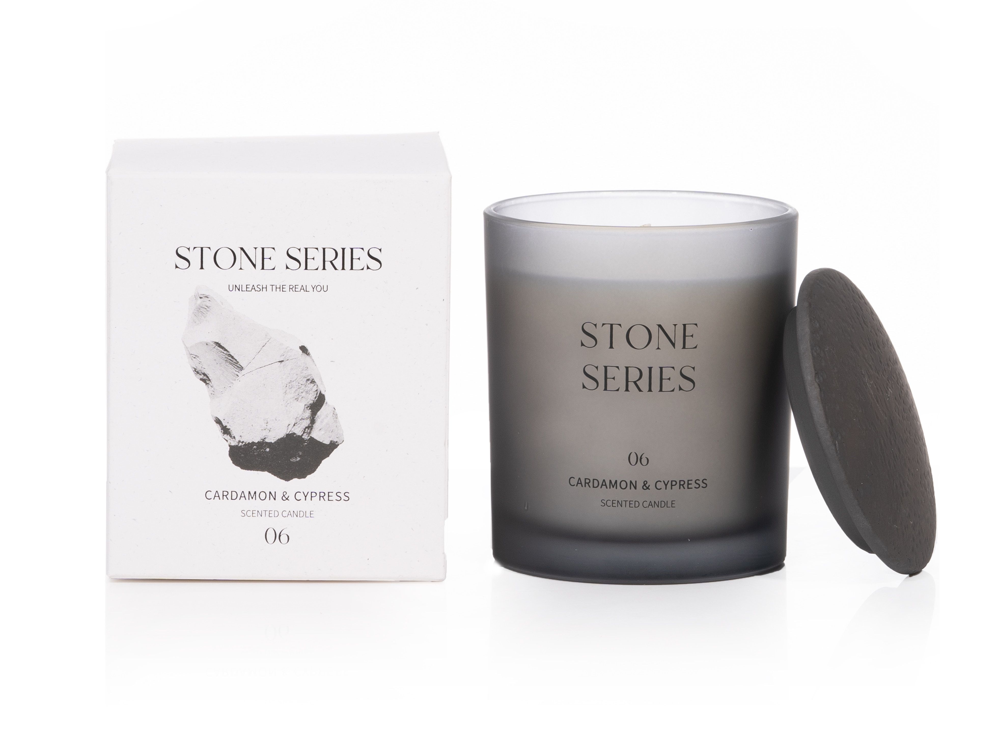 Discover the essence of understated elegance with our collection of STONE SERIES scented candle. The candle is presented in a deep gray semi-transparent matte glass vessel, adorned with silk-screened text, exuding a simple aesthetic.Topped with a ceramic lid, textured and dustproof, marrying practicality with understated elegance.Candles enhance any space, reflecting your distinctive style beyond mere decoration.